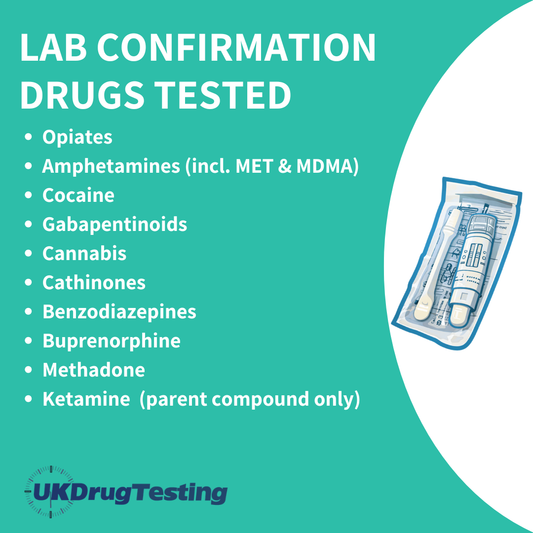 Laboratory Confirmation Saliva LC-MS/MS Drug Test Pack (£66.00 per single drug, can not test for ALC)