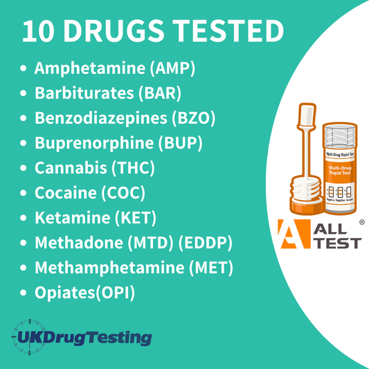 - Range of drugs that can be detected on an oral drug test-a large number of drugs can now be detected on a saliva drug test and this is increasing all the time. All the main drugs of abuse can be detected in saliva including alcohol. Saliva drug test kits are capable of detecting a variety of drugs and substances. It's important to note that the range of drugs detectable in saliva can vary depending on the specific saliva drug test kit or laboratory analysis used. Additionally, the detection window for each drug may vary, with some substances like Cannabis being detectable in saliva for only a few hours after use, while others may be detectable for a couple of days.